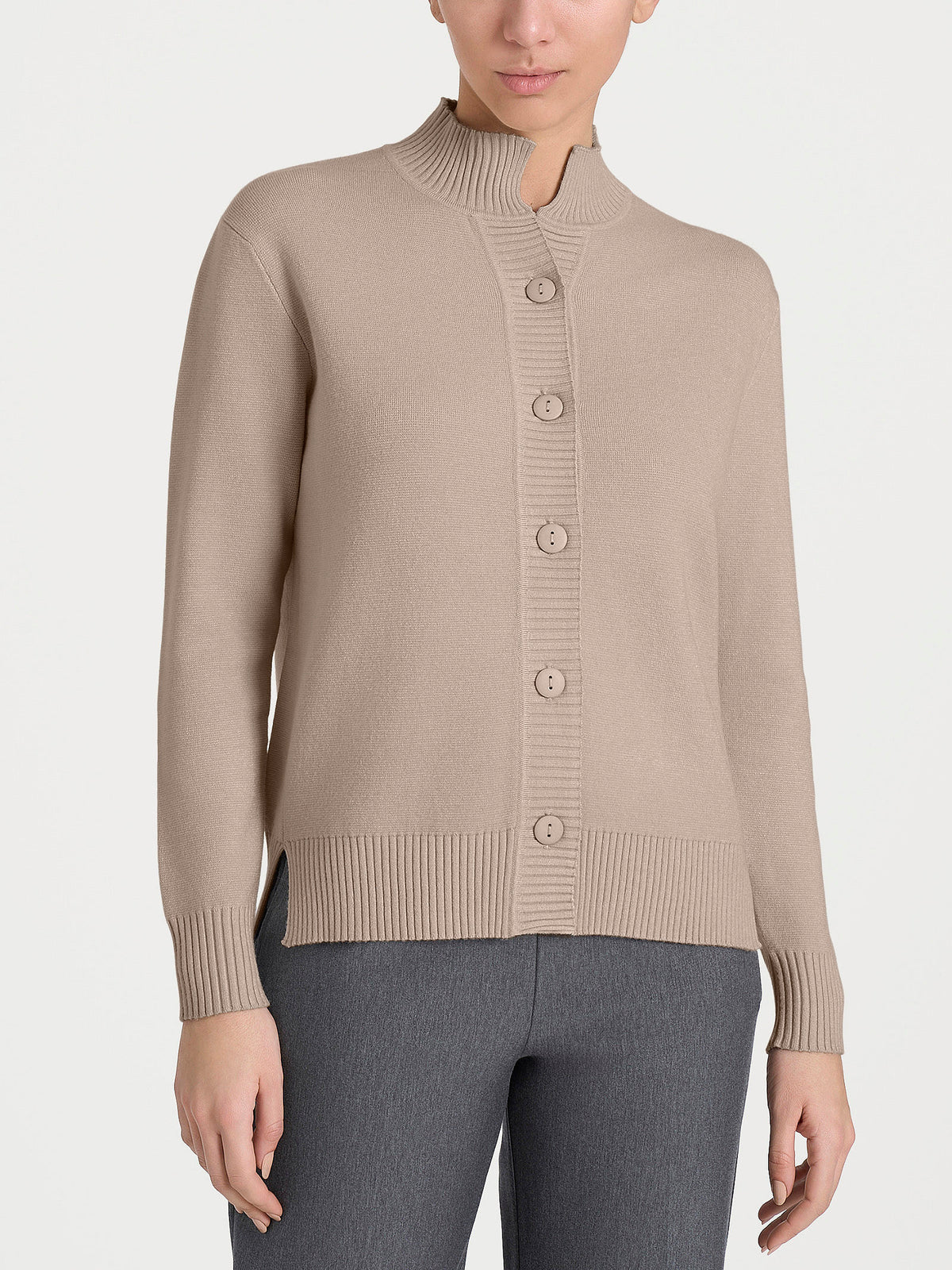 Cardigan con collo alto lupetto e chiusura a bottoni da donna in viscosa, tessuto in finezza 12, caldo, morbido e pratico.